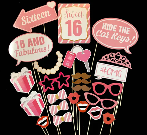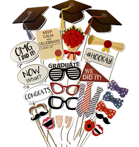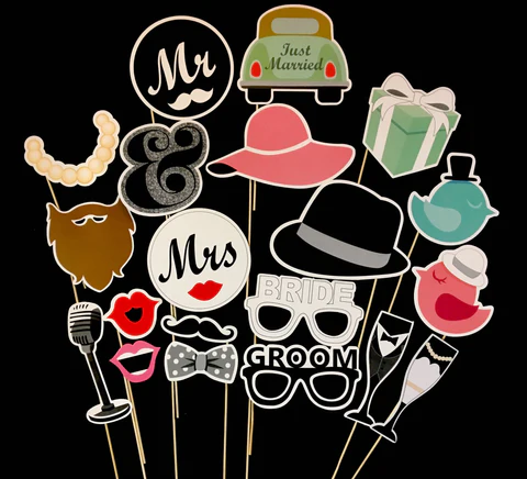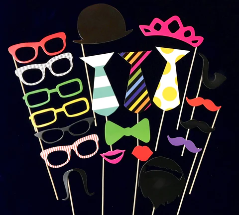 With every photobooth rental order, you will receive a complimentary prop kit! Props are a fantastic way to bring out the playful side in your guests and add a touch of personality to your pictures. Our standard prop kit includes paper glasses, mustaches, lips, ties, and various accessories – perfect for any celebration! In addition to the standard prop kit, we also offer themed props for special occasions like weddings, birthdays, holidays, and other events. The best part is, we don’t charge extra to replace the standard prop kit with themed props! Simply let us know your desired themed props by replying to your confirmation email, and we will make sure they are included for your event.